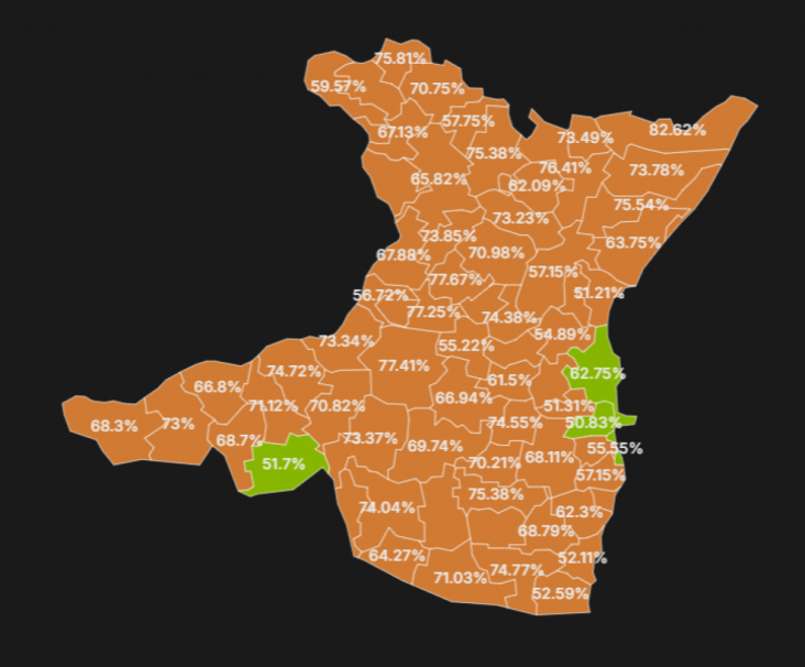 Conform datelor publicate pe site-ul Autorităţii Electorale Permanente, după centralizarea rezultatelor din toate cele 563 de secţii de votare din judeţ, Nicuşor Dan a fost votat de 180.853 de alegători, iar George Simion – de 177.458.