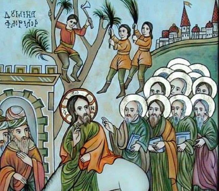 Cu o săptămână înainte de patimile sale, Iisus Hristos a intrat în Ierusalim pe un asin, înconjurat de cei 12 apostoli. Mulţimea, recunoscându-l ca pe adevăratul Mântuitor, l-a întâmpinat cu ramuri de finic şi cântări de bucurie. Iisus şi-a pregătit singur intrarea ca să fie recunoscut ca fiind Mesia, iar când l-au văzut, oamenii au început să strige: „Osana! Bine este cuvântat Cel ce vine întru numele Domnului”.