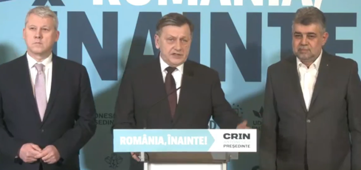”Alegerile prezidenţiale care urmează sunt, în fond, o mare alegere: România, înainte sau România, înapoi. Alianţa noastră sub acest slogan, sub această formulă este o opţiune majoră a acestor formaţiuni politice, a alegătorilor noştri, pentru o Românie occidentală, pentru o Românie democratică, pentru o Românie a secolului XXI şi nu pentru o Românie care să privească înapoi, pentru o Românie a obscurantismului şi a întoarcerii la vremuri pe care nu le mai vrem, niciodată revenite în destinul nostru”, a spus Antonescu.