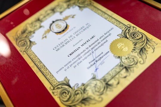 Cristian Măcelaru, dirijor de renume internaţional şi director artistic al Festivalului şi Concursului Internaţional „George Enescu”, a primit, marţi, la Ateneul Român, titlul de Cetăţean de Onoare al Municipiului Bucureşti, distincţie acordată de primarul general interimar Stelian Bujduveanu.