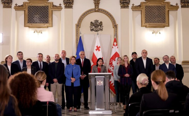 Zurabishvili a declarat lângă Palatul Orbeliani că „aici, lângă reședința președintelui Georgiei, se află oamenii din Georgia, întregul public”.