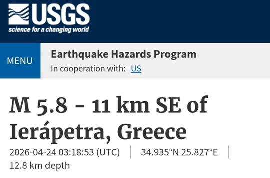 Cutremur de magnitudinea 5,8 în largul coastelor Insulei Creta, în Gregia