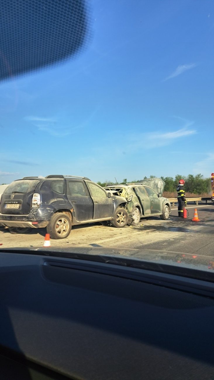 ”Am fost solicitaţi să intervenim în cazul unui eveniment rutier produs pe autostrada A1, la kilometrul 59. Detaşamentul de Pompieri Găeşti a intervenit cu o autospecială de stingere cu apă şi spumă, Garda de Intervenţie Potlogi cu o autospecială şi un echipaj SMURD, iar Detaşamentul de Pompieri Titu cu o autospecială de descarcerare”, a transmis, luni, ISU Dâmboviţa.