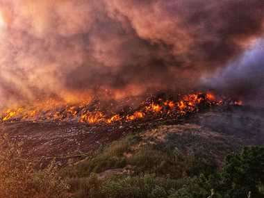 Incendiul a izbucnit, în jurul orei 17:00, la groapa de gunoi menajer din localitatea Aninoasa şi s-a extins rapid de la câteva sute de metri pătraţi la o suprafaţă de un hectar.