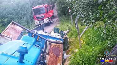 ISU Dâmboviţa a intervenit, joi seară, în localitatea Malu cu Flori, unde un tractor s-a răsturnat.