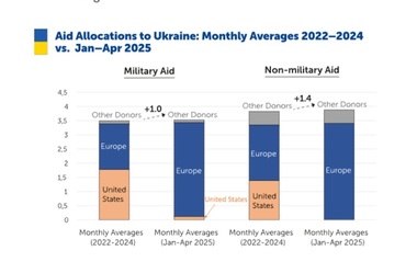 ”Statele Unite, care erau mai înainte cel mai mare donator al Ucrainei, nu au mai anunţat nicio anvelopă de la începutul lui ianuarie”, însă Ucraina a primit mai mult ajutor în perioada ianuarie-aprilie 2025 decât media anilor precedenţi în aceeaşi perioadă.