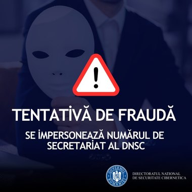 Directoratul Naţional de Securitate Cibernetică (DNSC) atrage atenţia asupra unei noi tentative de fraudă telefonică, în care atacatorii se dau drept angajaţi ai acestei instituţii, vizând în special antreprenorii din România. Potrivit DNSC, printr-un apel telefonic fals, victima este contactată de pe un număr ce pare a fi al instituţiei, sub pretextul implicării într-un caz de spălare de bani, pentru o plată din 2023, către o firmă fictivă şi cu ameninţarea că DNSC ar fi impus poprirea pe conturile victimei, informaţie „total falsă”. DNSC avertizează că atacatorii îşi aleg ţintele din baze de date publice.