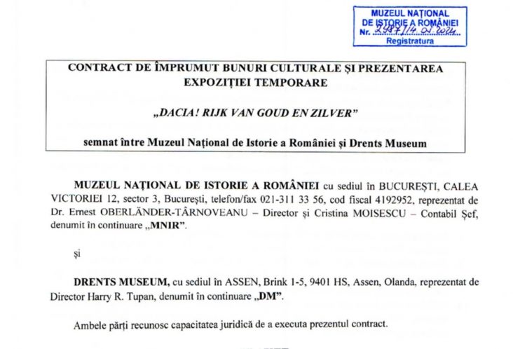 STIRIPESURSE.RO prezintă integral contractul de închiriere încheiat între Muzeul Național de Istorie a României și Drents Museum din Assen, Olanda (la finalul articolului).