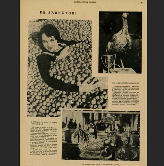 Publicaţia prezintă şi imagini cu „cel mai mare curcan din lume”, american fireşte, „o recoltă de nuci de peste 2 miliarde de lei” în California, dar şi „o vitrină cu o raţă garnisită cu pateuri…”.