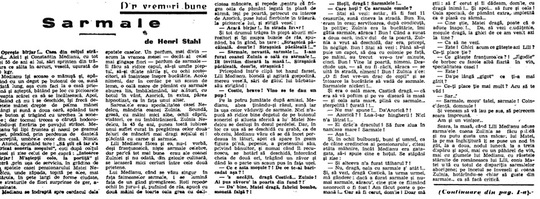 Într-un număr din 21 decembrie 1941 al Gazetei municipale se tipărea o proză scurtă, „Sarmale”, semnată de Henri Stahl. „…Sarmalele erau specialitatea casei Nedelcu, mândria coanei Zulnia. Scundă, grasă, cu mâini mici albe, ochii căprii, visători, ce nu îmbătrâniseră. Zulnia Nedelcu, la 45 de ani, punea toată iubirea unui suflet curat în pregătirea celor două feluri de mâncări dragi soţului ei: plăcintă de carne şi sarmale”.