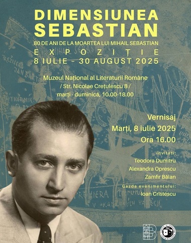 Vernisajul expoziţiei „Dimensiunea Sebastian”, care marchează 80 de ani de la moartea scriitorului, are loc în 8 iulie, începând cu ora 16.00, la sediul Muzeului Naţional al Literaturii Române din strada Nicolae Creţulescu nr. 8.