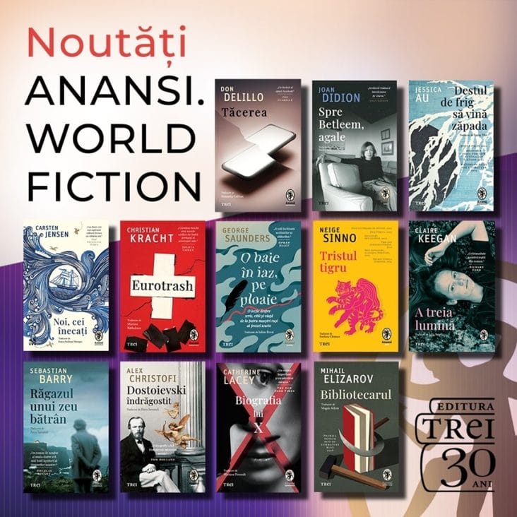 Lista noilor apariţii publicate sub sigla Anansi. World Fiction, imprint al Editurii Trei, include atât traduceri inedite din operele unor autori îndrăgiţi, cât şi romane ale unor autori multipremiaţi traduşi în premieră în limba română. O parte dintre acestea vor fi lansate la târg, într-un eveniment amplu ce reuneşte traducători, critici literari şi scriitori: sâmbătă, 7 decembrie, ora 12.00, în spaţiul de evenimente „Mircea Nedelciu” din cadrul Romexpo.