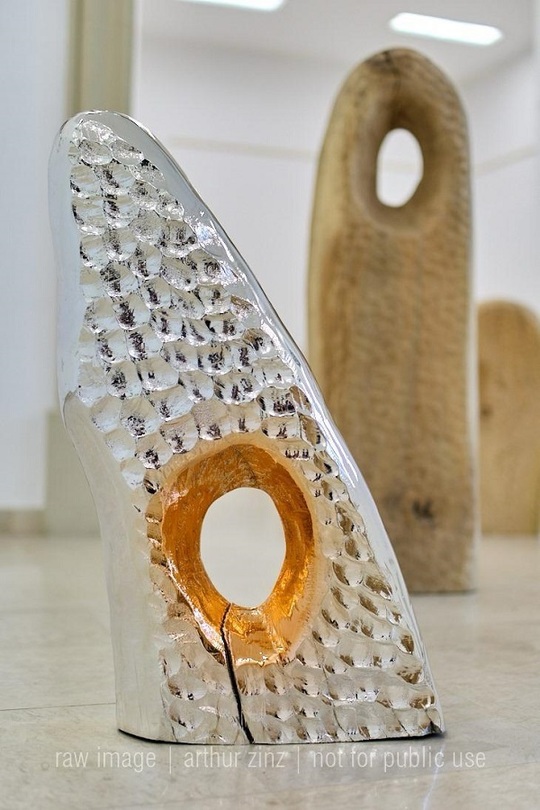 În expoziţie, sculpturile sale humanoide capătă un rol iniţiatic: forme ce par să prindă viaţă, invitând privitorul la o meditaţie asupra fiinţei şi a lumii de dincolo de aparenţă.