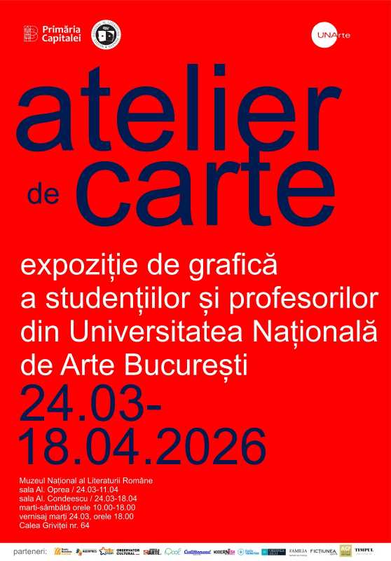 O expoziție de grafică a studenților și profesorilor din cadrul Universității Naționale de Arte București – ‘Atelier de carte’ – va fi găzduită, începând de săptămâna viitoare, la sediul din Calea Griviței al Muzeului Național al Literaturii Române (MNLR).