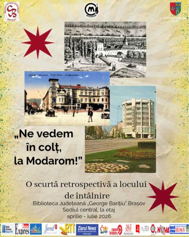 De la vechea poartă medievală a Străzii Porții și atmosfera negustorilor de altădată, la eleganța dispărutei Vile Kertsch și modernismul anilor 1970, ‘Ne vedem în colț, la Modarom!’ – reprezintă o scurtă retrospectivă a celui mai celebru loc de întâlnire din Brașov, sub forma unei expoziții organizate la Biblioteca ‘George Barițiu’ din Brașov.