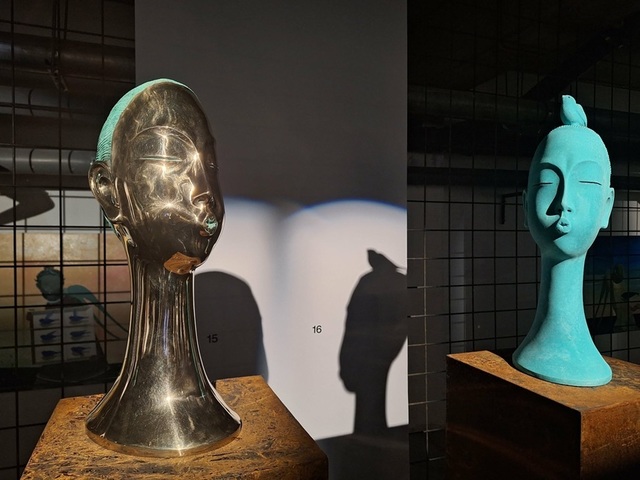 Expoziţia este împărţită pe trei capitole: partea de sculptură, la intrare, o zonă în care frumosul se găseşte în lucrări. „Este o cromatică în care mă joc cu trei culori dar toate obţinute pe metal, în bronz, dar patinate diferit. Partea de polişare îi poartă numele lui Brâncuşi iar partea turcoaz este atacată cu acid. Este un pigment care se naşte pe acest bronz. Toate lucrările sunt puse pe un postament de corten, metal oxidant, ignobil, care ar trebui să pună în evidenţă această esenţă care este bronzul şelfuit. Mă joc cu această complementaritate a culorilor, aur şi turcoaz, aşa cum o făceau bizantinii”, explică artistul.