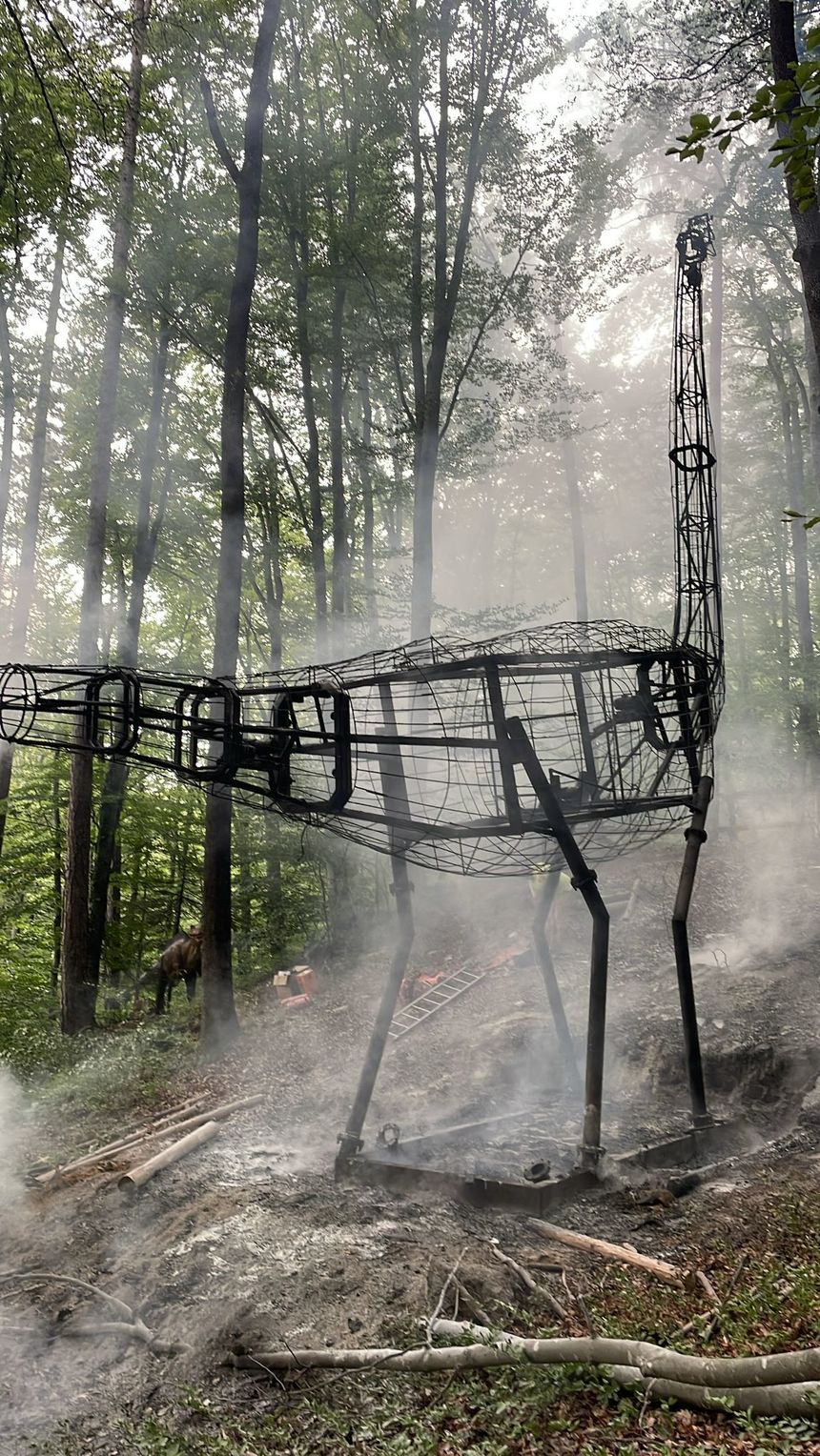 Braşov: Incendiu la Dino Parc din Râşnov/ Un dinozaur de zece metri a luat foc – FOTO, VIDEO