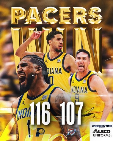 Echipa de baschet masculin Indiana Pacers s-a desprins în ultimele minute ale unui meci foarte strâns (116-107) şi a redevenit lider în faţa Oklahomei City Thunder la finalul meciului 3 al finalei NBA.