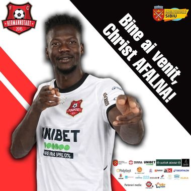 „Bine ai venit, Christ Afalna! Christ Nkama Afalna este un atacant central în vârstă de 27 de ani din Camerun. Acesta are o înălţime de 1,87 metri şi poate evolua şi ca aripă, pe ambele benzi ale terenului, având un joc bun de ambele picioare. În ţara natală, Afalna a evoluat pentru AS Matelots, iar în ţara noastră pentru Somuz Fălticeni şi Unirea Slobozia, echipă pentru care în prima parte a acestui sezon a bifat 21 de prezenţe, a marcat de patru ori şi a oferit două pase de gol. Christ este cotat la suma de 550.000 euro pe siteurile de specialitate şi a semnat cu FCH un contract valabil pentru un sezon şi jumătate”, scrie în comunicatul publicat de sibieni.