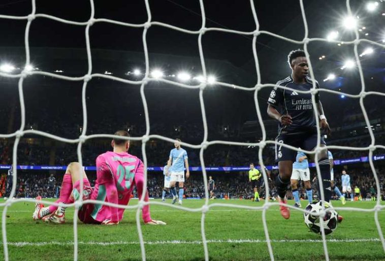 Real Madrid a învins-o pe Manchester City și pe Etihad Stadium, cu 2-1, după 3-0 pe Santiago Bernabeu. Soarta meciului a fost decisă într-o măsură de faza din min. 20, când Bernardo Silva a făcut henț la șutul lui Vinicius Junior, portughezul a fost eliminat, iar brazilianul a deschis scorul din penalty-ul acordat (22).