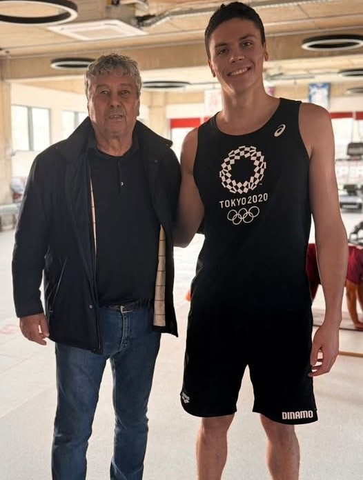 Campionul olimpic la înot David Popovici a publicat pe pagina sa de Facebook o fotografie în care apare alături de marele tehnician și a scris doar mesajul: ‘Un gol imens…’