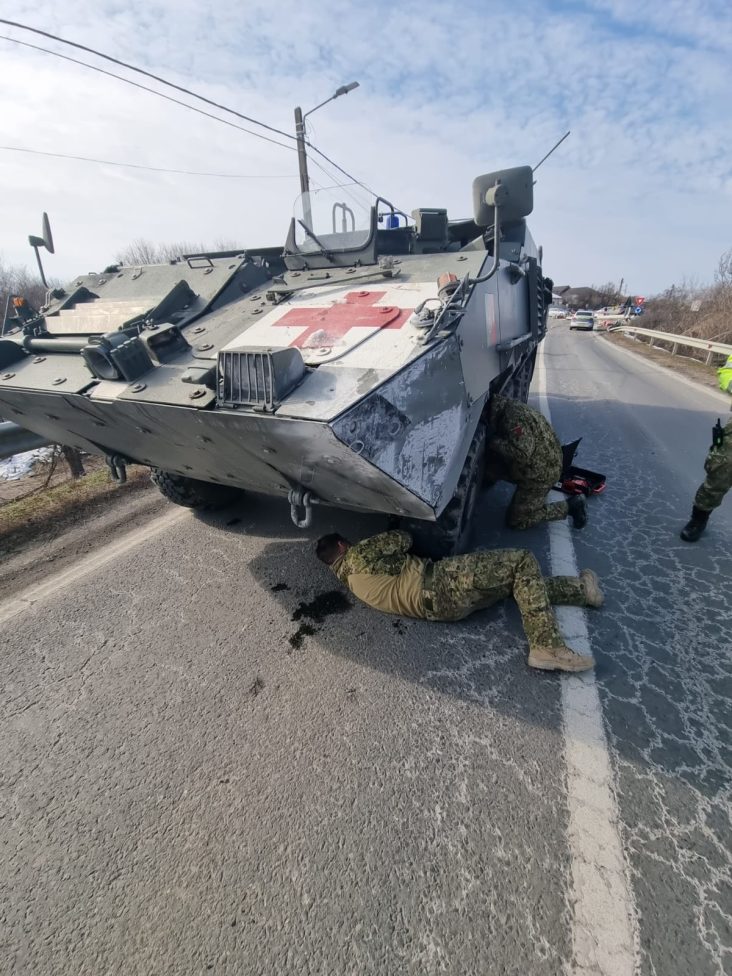 “Din primele verificări, poliţiştii au stabilit faptul că un transportor militar blindat condus de către o tânără de 21 de ani, cetăţean portughez, din cauze ce urmează a fi stabilite în cursul cercetărilor, ar fi intrat în coliziune cu un stâlp de beton de pe marginea părţii carosabile. În urma evenimentului rutier nu au existat victime omeneşti, fiind produse doar pagube materiale. Conducătorul auto a fost testat cu aparatul etilometru, rezultatul fiind negativ”, au declarat reprezentanţii IPJ Olt.