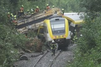 Aproximativ 100 de persoane se aflau la bordul trenului când cel puțin două vagoane au deraiat într-o zonă împădurită în jurul orei locale 18:10 (1600 GMT), a raportat dpa.