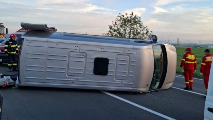 Un microbuz în care se aflau doi ucraineni s-a răsturnat miercuri dimineața pe DN 2A, în județul Constanța.