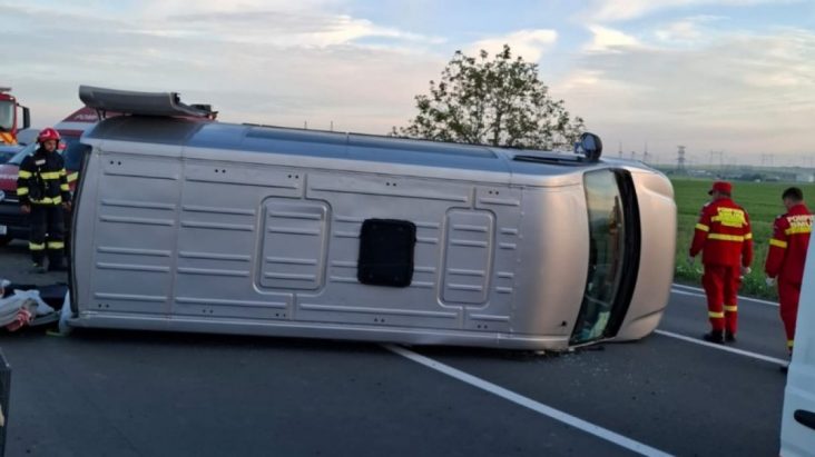 FOTO Microbuz cu ucraineni, răsturnat pe DN 2A