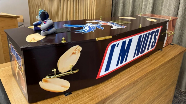 FOTO Un sicriu ca niciun altul: dorința inedită a unui bărbat de a fi înmormântat ‘într-un Snickers’