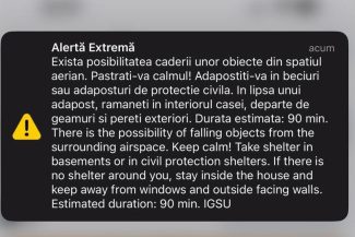 Conform MApN, o ţintă aeriană a intersectat pentru scurt timp spaţiul aerian naţional miercuri seară, în apropiere de localitatea Reni, pe o adâncime de aproximativ 1 km în interior, îndreptându-se ulterior către spaţiul aerian ucrainean. Totodată, a fost semnalată o posibilă zonă de impact pe teritoriul naţional, în apropierea frontierei româno-ucrainene, la aproximativ 10 kilometri est de limita administrativă a municipiului Galaţi, fără să fie raportate pagube materiale. Pentru supravegherea şi monitorizarea spaţiului aerian din zonă, două aeronave F-16 ale Forţelor Aeriene Române şi, ulterior, două aeronave Eurofighter ale Forţelor Aeriene Spaniole, aflate în Serviciul de Luptă Poliţie Aeriană, au decolat din Baza 86 Aeriană Borcea, respectiv 57 Aeriană Mihail Kogălniceanu. Joi dimineaţă, forţele MApN vor efectua cercetări în locaţia semnalată, precum şi în alte zone aflate în proximitatea obiectivelor ucrainene atacate de forţele ruse.