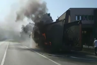 VIDEO Un tir a ars ca o torță în zona Porțile de fier I: O anvelopă a luat foc în mers