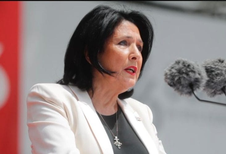 Vineri, într-o conferinţă de presă, Salome Zourabichvili a declarat că numirea preşedintelui în ziua următoare este o „parodie” şi ar fi „neconstituţională” şi „ilegitimă”.
