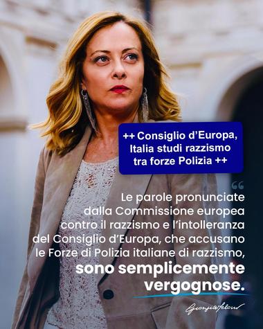 „Cuvintele ECRI, care acuză poliţia italiană de rasism, sunt pur şi simplu ruşinoase”, a postat miercuri pe platforma X Giorgia Meloni, liderul partidului Fraţii Italiei.
