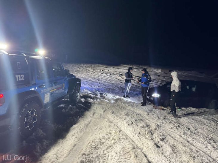 Potrivit unei informări a Inspectoratului de Jandarmi Judeţean (IJJ) Gorj, jandarmii montani s-au deplasat la locul indicat, au găsit autoturismul suspendat în zăpadă şi trei tineri din judeţul Olt, care erau echipaţi de munte, dar nu îşi puteau continua deplasarea.
