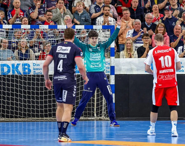 Cătălin Haidu a debutat pentru echipa de seniori a lui SG Flensburg-Handewitt în seara precedentă, când a fost introdus în ultimele 5 minute de joc cu GOG şi a încântat publicul cu paradele sale, primind aplauze alături de coechipieri pentru calificarea la Turneul F4.