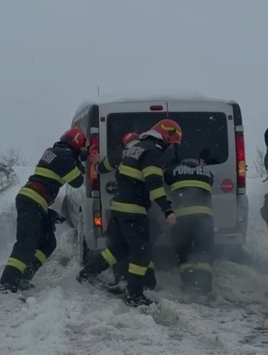 ”ISU Bucureşti-Ilfov a intervenit în localitatea Chiajna pentru deblocarea unui microbuz rămas înzăpezit, în care se aflau mai multe persoane. Din cauza ninsorii şi a depunerilor de zăpadă de pe carosabil, autovehiculul nu şi-a mai putut continua deplasarea în condiţii de siguranţă. Echipajele de intervenţie au acţionat pentru degajarea microbuzului şi pentru sprijinirea persoanelor aflate la bord, astfel încât acestea să îşi poată continua deplasarea în siguranţă”, transmite Inspectoratul General pentru Situaţii de Urgenţă.
