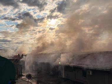 Un puternic incendiu a izbucnit luni dimineaţă în apropierea Capitalei, la o hală folosită pentru depozitarea maselor plastice, aflată în Buftea.