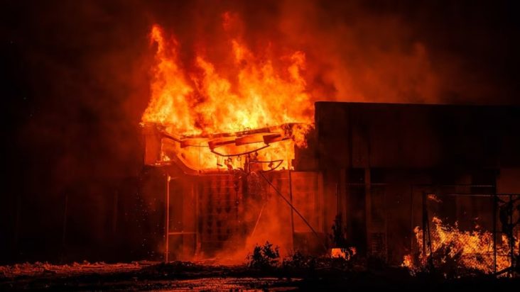 Înregistrări video publicate vineri de această sursă surprind flăcări care devorează arbori, pământ acopetit de cenuşă şi un elicopter care transportă apă.