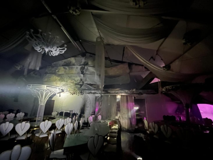 Flăcările au distrus o construcție tip parter plus mansardă pe o suprafață de aproximativ 300 metri pătrați, inclusiv bunurile aflate în interior. De asemenea, a fost afectat și un cort pentru evenimente pe o suprafață de aproximativ 100 metri pătrați.
