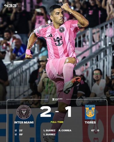 Dar Luis Suarez a compensat perfect absenţa starului argentinian de 38 de ani, marcând de două ori din penalti (23′, 89′) împotriva echipei Tigres a lui André-Pierre Gignac.