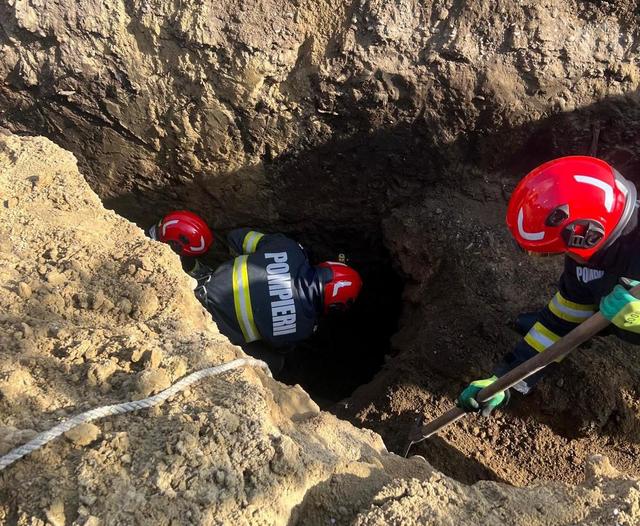Intervenţie a pompierilor din Galaţi pentru scoaterea unui bărbat de sub un mal de pământ care s-a surpat peste el/ Acesta lucra la reţeaua de canalizare