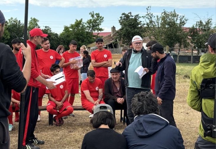 B.N.: Am filmat în trei localităţi învecinate din judeţul Giurgiu şi în Orăşelul Copiilor din Bucureşti. Nu ai nevoie să ieşi mai mult de 30 de kilometri din Bucureşti ca să dai de o cu totul altă Românie decât cea văzută de la geamul office building-urilor din Pipera. Una cu capre care pasc în locurile de joacă perfect amenajate, dar încuiate, pentru că aveau doar scop electoral sau culmea, în care ca să ajungi pe terenul de fotbal al satului chiar trebuie să treci prin cimitir!