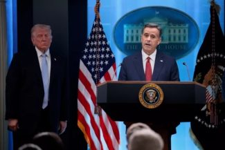 Preşedintele american a fost însoţit la această conferinţă de presă, în sala de briefing, de consilieri de rang înalt în domeniul securităţii naţionale, inclusiv de Pete Hegseth şi emisarul special Steve Witkoff.