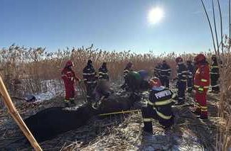 Suceava: Intervenţie dificilă a salvatorilor ISU, pentru salvarea a peste 20 de vaci care au căzut într-un iaz – FOTO