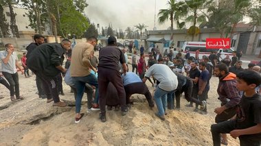 Mai multe atacuri aeriene au lovit curtea spitalului, potrivit doctorului Saleh Al Hams, şeful asistenţei medicale. Unii oameni sunt îngropaţi sub dărâmături, a spus el, numind situaţia „o catastrofă”. Echipele medicale au încercat să mute pacienţii în unităţi sigure din interiorul spitalului.