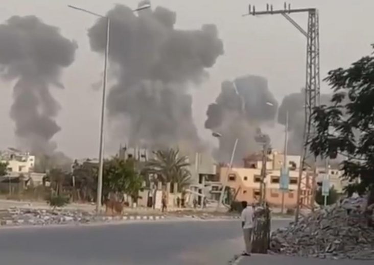 Imaginile video de la faţa locului au arătat coloane uriaşe de fum şi praf de la ceea ce pare a fi unul dintre cele mai ample atacuri din Gaza din ultimele săptămâni.