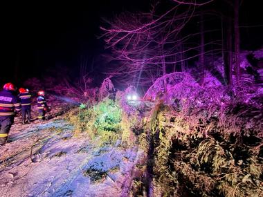 ISU Braşov – 16 intervenţii în ultimele 24 de ore, ca urmare a vântului puternic, majoritatea în cazul unor copaci căzuţi sau a unor elemente de construcţie desprinse – FOTO