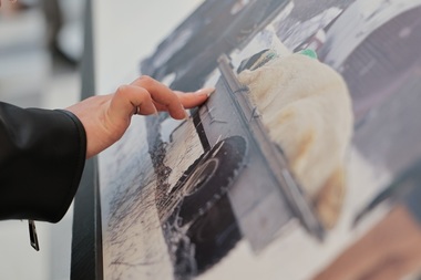 I.B.: Tehnologia Canon ne-a permis să facem imposibilul posibil: să transformăm imagini în suprafeţe tactile, pe care să le „citeşti” cu degetele, ca pe o hartă a emoţiilor. Imaginile au fost imprimate cu ajutorul unei imprimante speciale – „PRISMAelevate XL” – care adaugă straturi de cerneală până când textura iese efectiv din plan. Contururile devin volume, formele se simt, iar fotografia devine o prezenţă fizică. Dar experienţa nu se opreşte aici. Fiecare planşă tactilă este însoţită de o poveste audio, redată prin difuzoare. Vocile unor actori talentaţi ghidează vizitatorii – nevăzători sau tipici – prin universul imaginilor. Sunt descrieri atent scrise, profunde, uneori poetice, care reuşesc să transmită, nu doar ce se află în imagine, ci şi ce simţi când o priveşti. Pentru unii, aceste poveşti sunt cheia de acces. Am colaborat strâns cu mai multe organizaţii şi asociaţii ale persoanelor nevăzătoare, pentru a înţelege mai bine cum trebuie să arate şi să fie poziţionate textele Braille, cât de mari trebuie să fie elementele tactile, cum se citeşte o fotografie fără vedere şi ce fel de detalii contează cu adevărat. Fiecare sugestie ne-a ajutat să rafinăm întregul proces, să adaptăm elementele şi să oferim o experienţă care nu e doar impresionantă tehnologic, ci şi, real, utilă şi accesibilă. Până la urmă, nu a fost vorba doar despre imprimare, ci despre o întrebare de fond: „cum putem face o fotografie să fie trăită de cineva care nu o poate vedea?”.
