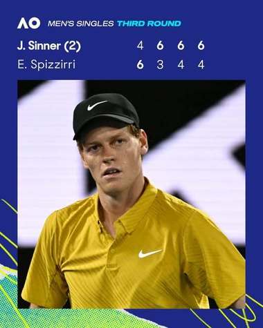 După ce şi-a pierdut serviciul un punct mai târziu şi a ajuns în dezavantaj cu 3-1, Sinner a fost salvat de politica turneului privind căldura extremă, care a permis închiderea acoperişului stadionului.